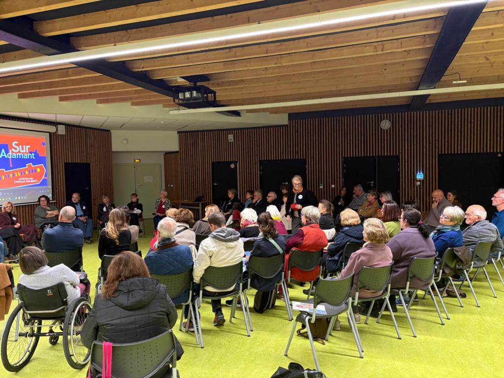 La rencontre s’est tenue à l’école Alice (Salle du Parc) et a débuté par la projection d’un extrait du film Sur l’Adamant, illustrant l’importance des lieux d’accueil et de lien social pour les personnes en souffrance psychique.